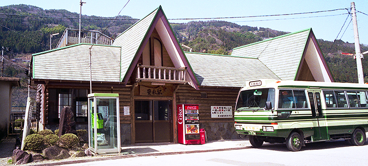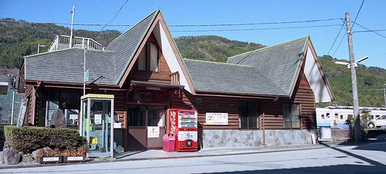 ▲昭和62(1987)年2月改築のログハウス風駅舎。ホームは島式1面。