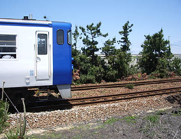ポイント付近に旧・海ノ中道駅の廃ホームが見えます。(2009.5撮影)
