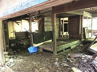 駅への目印の廃屋が現れた。