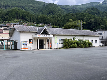 ▲列車の定刻の10分前に浦川駅に到着。 |