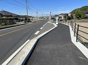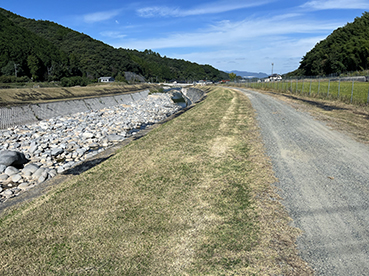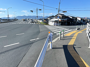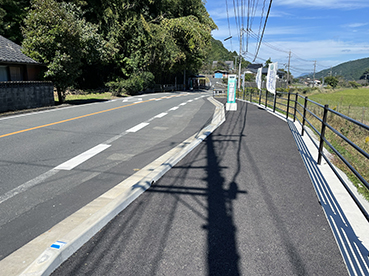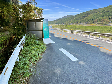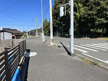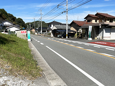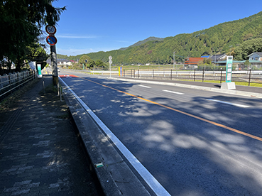 ▲県道に歩道が無く危険なので彦山川の対岸に