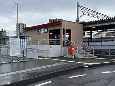 ▲向洋駅北口へ。仮駅舎だが、旧北口駅舎と同じ 造りなので移築したのでは?