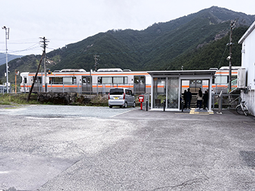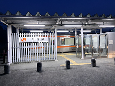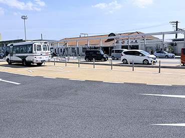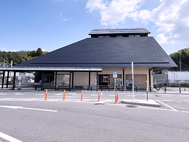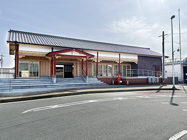 ▲新堂駅。南口にカフェや市役所支所などができた。
