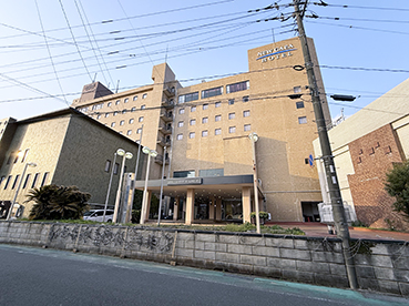 ▲大牟田駅から徒歩15分ほどでホテルに到着。