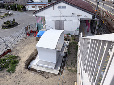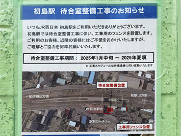 ▲初島駅。新駅舎はまだ使用開始になっていない。