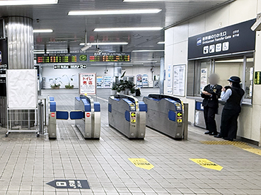 ▲桜島駅の万博臨時出場口。7:30〜14:00まで稼働。