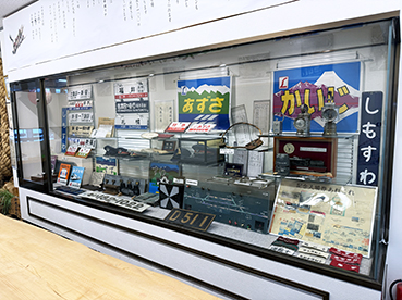 ▲下諏訪駅の鉄道資料を眺めて時間を潰す。