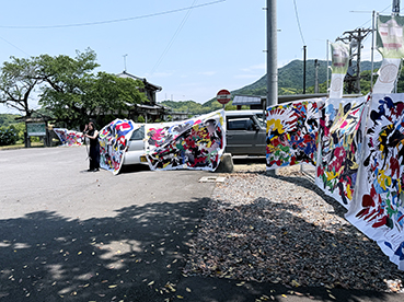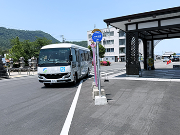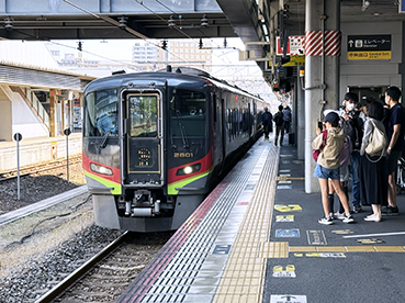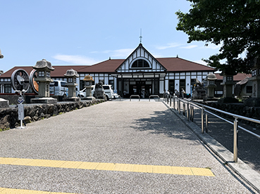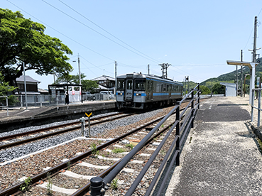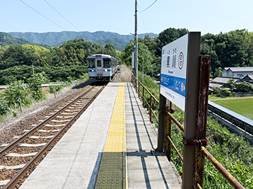 ▲讃岐財田駅に到着。怪しげな数人が駅前を占拠し