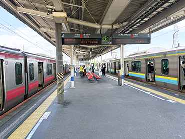 ▲東京駅・京葉線ホームから〔わかしお〕に乗車。