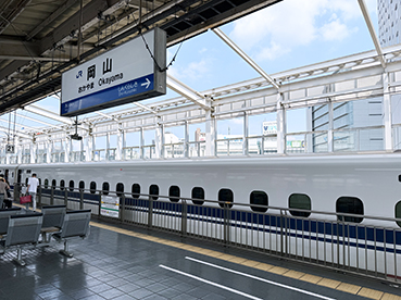 ▲新大阪駅で〔ひかり〕に乗り換え。