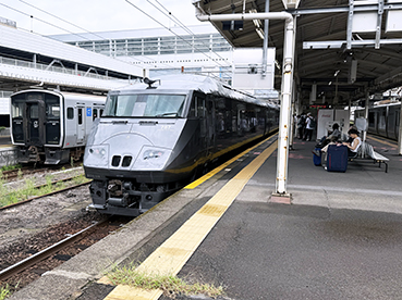 ▲〔ひゅうが〕の自由席で高鍋駅へ。