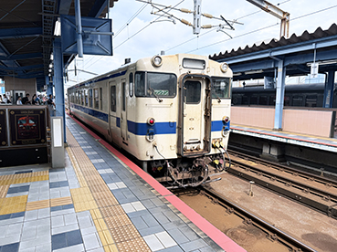 ▲普通列車で延岡駅に到着。
