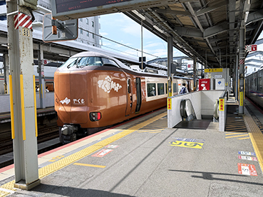 ▲出雲市駅。〔スーパーおき〕に乗車。