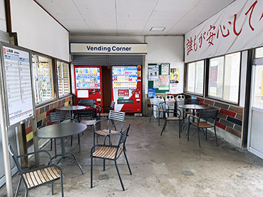 ▲都野津駅には自販機、イスとテーブルがあり 快適に過ごすことができた。