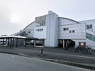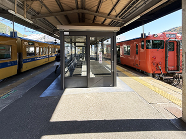 ▲最後に仁豊野駅で下車。駅前が整備されたと