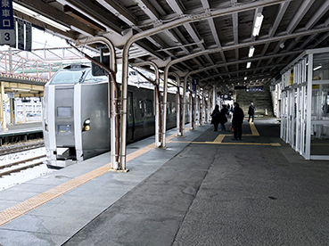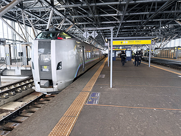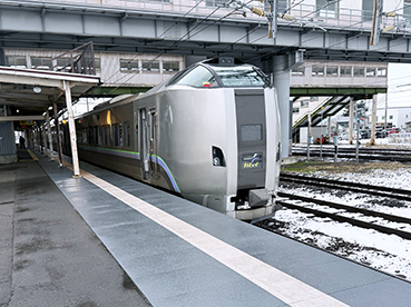▲深川駅で〔カムイ〕指定席に乗車。