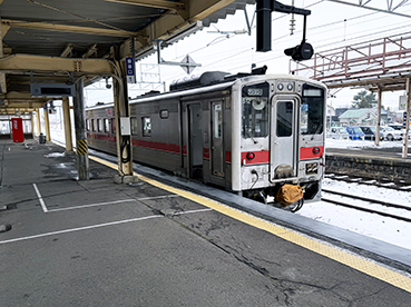 ▲バス停からほど近い深川駅へ。