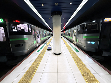 ▲札幌駅で〔エアポート〕にのりかえ。