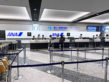 ▲早速、千歳空港のANAのカウンターに行き