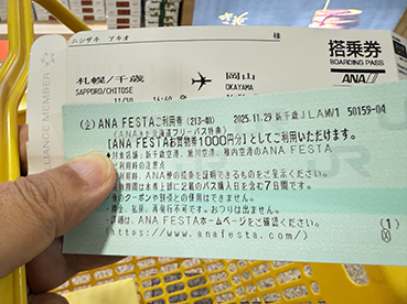 ▲千歳空港から岡山行きに搭乗。