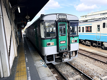 ▲引田駅始発の普通列車に乗車。