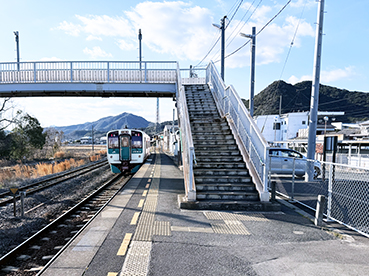▲引田駅で下車。新駅舎になって2度目の訪問だが、 アート看板か設置されてからは初訪問。
