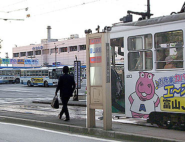 駅前に平成18(2006)年4月に開業した富山ライトレールの「富山駅北」停留所があります。(2008.4撮影)