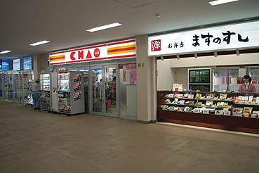 ▲南口仮駅舎内部。待合室、駅弁屋、コンビニ、駅そば、その他飲食店が入店しています。(2010.6撮影)