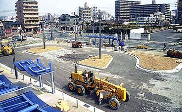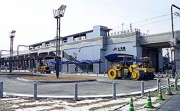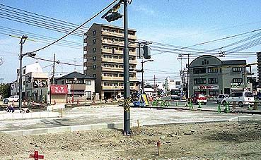 ▲地上時代の線路があった東側駅前。平成15(2003)年3月時、整備中でバス停ができるようです。