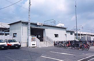 ▲スーパー「マルナカ」の駐車場から。大元駅付近は住宅密集地で、特にこの旧大元駅舎の反対側は開発が著しく、マンションなどがどんどん建てられています。 |
