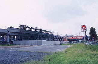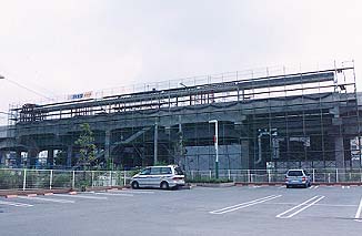 ▲旧駅舎のすぐそばから新駅を見たところ。 新駅舎が完成後はこのあたりも整備され、面影はなくなってしまうでしょう。 |