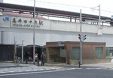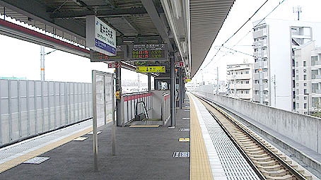 ▲平成20(2008)年3月15日開業。駅前にある茶色い建物は地下鉄中央線・高井田駅の入口です。