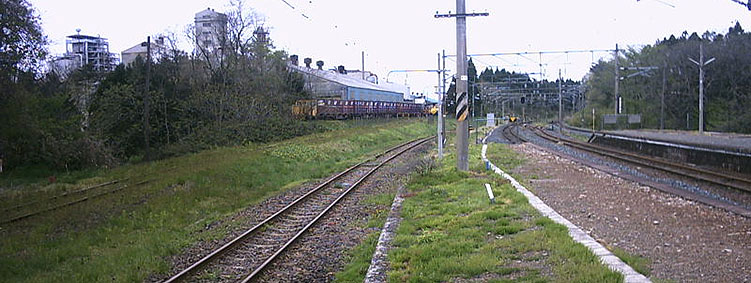 ▲駅舎に面したホームと真ん中の島式ホームの駅舎寄りの線路は専用線です。(2004.5撮影)