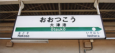 ▲現駅舎。昭和29(1954)年4月改築の駅舎で、平成25(2013)年3月にリニューアルされました。駅から南東に約2.5キロのところにある「五浦六角堂」をイメージしています。駅名のもととなった港まで2キロほど離れています。(2014.12撮影)