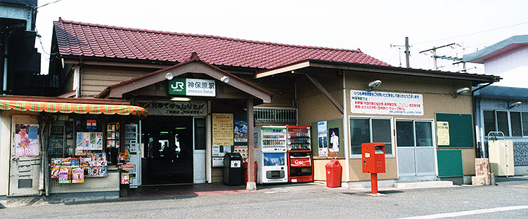 ▲明治30(1897)年11月開業、駅舎は昭和9(1934)年10月改築。駅前は小さなロータリーになっています。周辺は住宅地で古そうな建物もいくつかあります。上里町役場の最寄り駅です。(2024.11撮影)