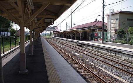 ▲旧駅舎。曲線を用いたファサードが特徴的でした。両毛線の足利駅や旧佐野駅と通づるデザインで昭和初期の改築といわれていました。(2010.8撮影)
