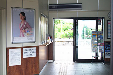 駅舎内は有人窓口とベンチがあります。トイレはホーム側にあります。(2013.7撮影)
