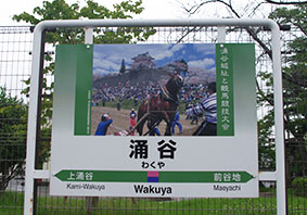 写真入り駅名標は「城山公園の桜と涌谷城」。(2006.5撮影)