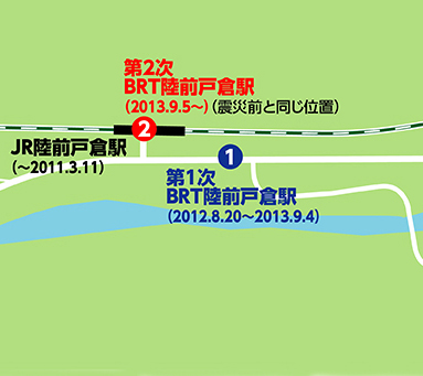 ●平成25(2013)年9月5日ー志津川駅方面の専用道が使用開始され、震災前の場所に移転。(第2次BRT駅)