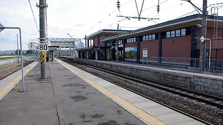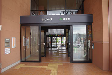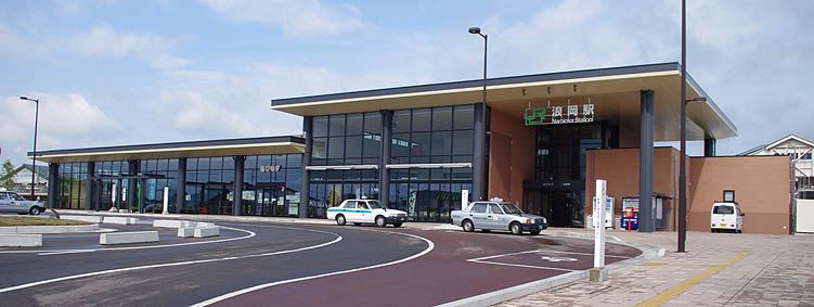 ▲現駅舎。駅舎部分は平成21(2009)年11月に使用開始、併設の浪岡地域交流施設「あぴねす」は平成22(2010)年4月にオープンしました。「あぴねす」では各種特産品の展示や軽食コーナーがあります。