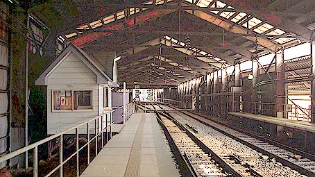 ▲シェルターを抜けると旧駅跡が現れます。旧ホーム、旧駅舎が残っていて、スイッチバック廃止後初めて訪れただけに感動ものでした。(2005.5撮影)