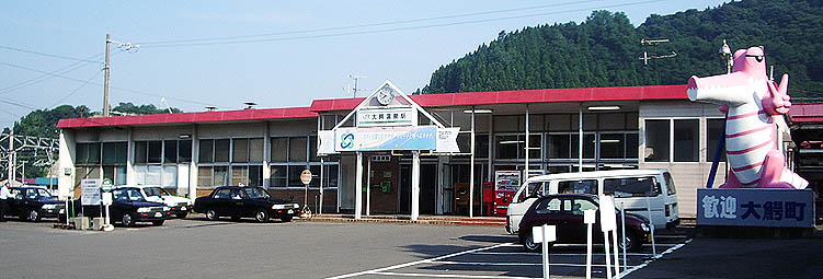 。昭和34(1959)年2月改築。駅周辺一体が温泉街になっています。隣に
