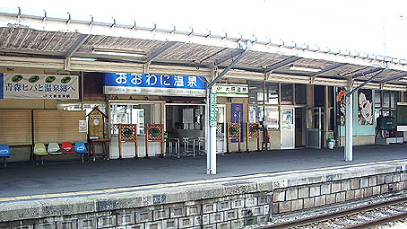 はJRとは別に独立した駅舎がありますが、大鰐線ののりばへ行くにはJRと同一のホームと跨線橋を通ります。