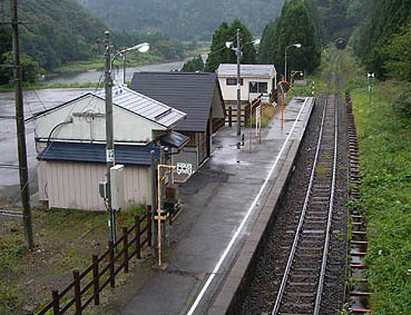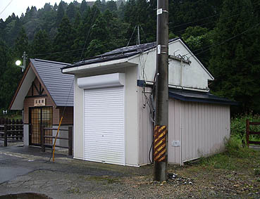 ▲ホームは片面。旧駅舎の一部が倉庫として残されています。(2009.9撮影)