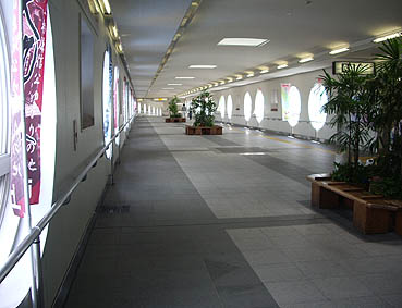 自由通路は「あすか通り」という名称で、客船をイメージして窓は丸くなっています。(2009.7撮影)