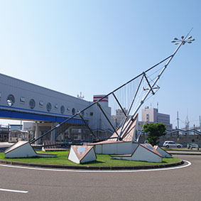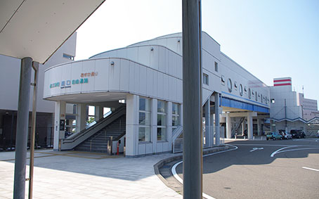 ▲現駅舎。客船「あすか」をイメージした白く美しい橋上駅です。平成12(2000)年4月の改築です。