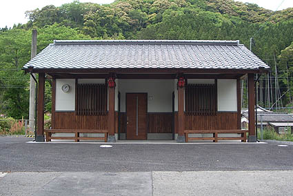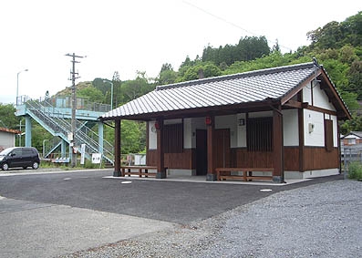 ▲現駅。旧駅舎跡に建てられた公衆トイレ。平成21(2009)年3月ごろに造られました。(2009.5撮影)