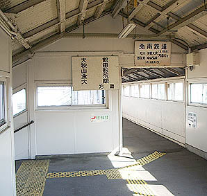 ▲弘南鉄道のホームはJRのホームとは離れた場所にあります。