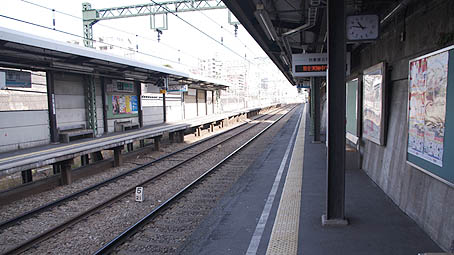 地上に建っている地平駅舎のように見えますが、切り通しを走る線路の上にせりだすように建っている橋上駅舎です。