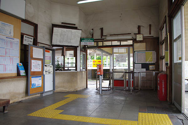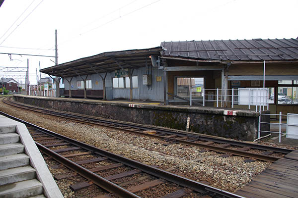 ▲ホームから駅舎。斜めに建っています。(2011.6撮影)